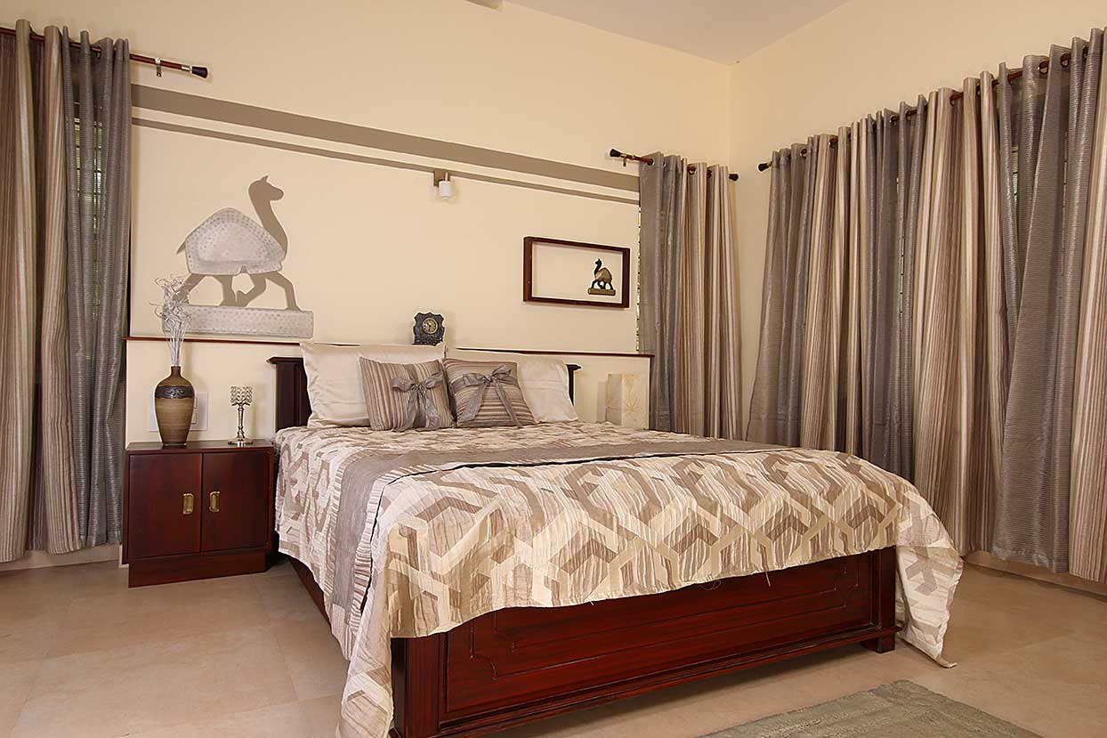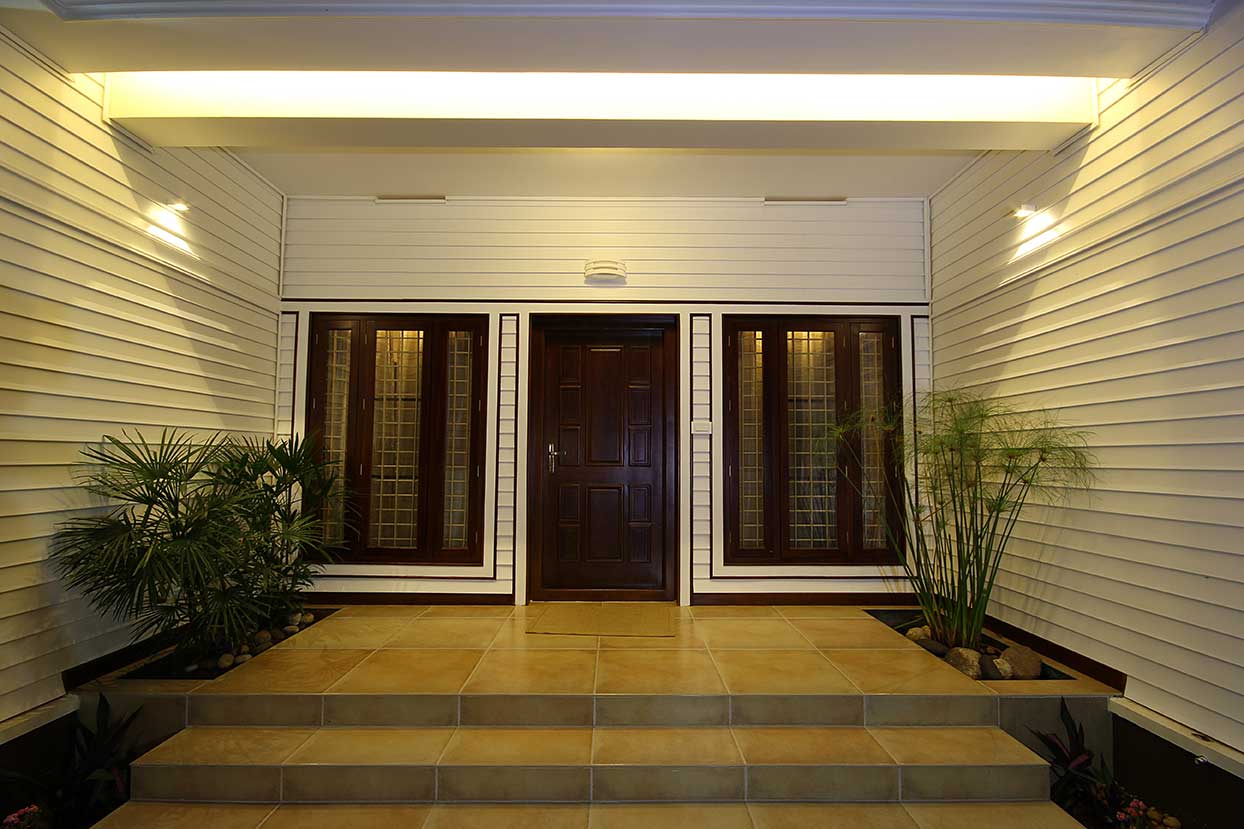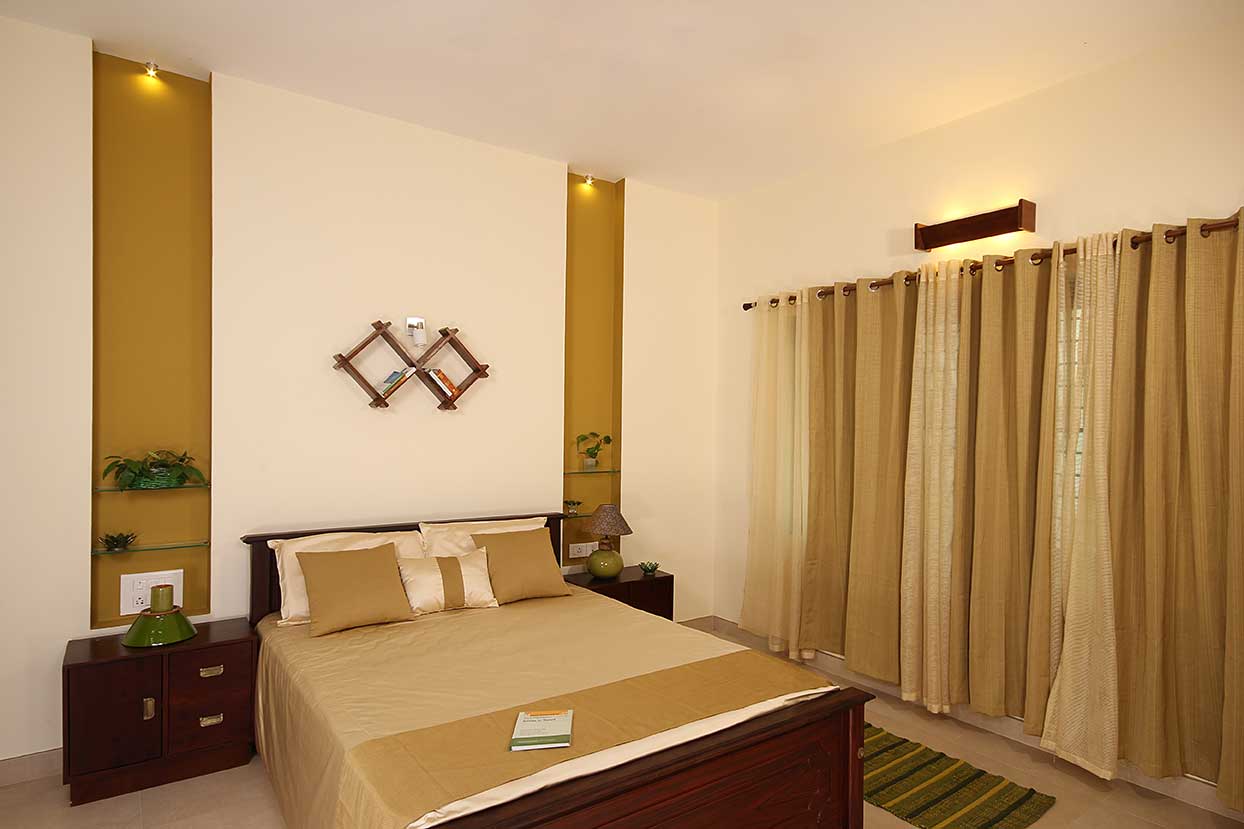 A homely urban cottage expresses its uniqueness in its interiors enriched by natural expressions of art, like a false step-out painting in a family space and a focal structure is a central column embraced by wine shoot vegetation.