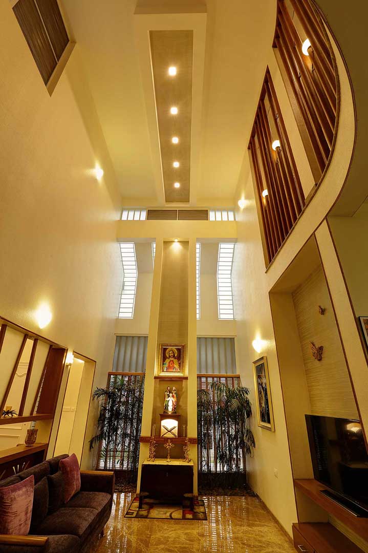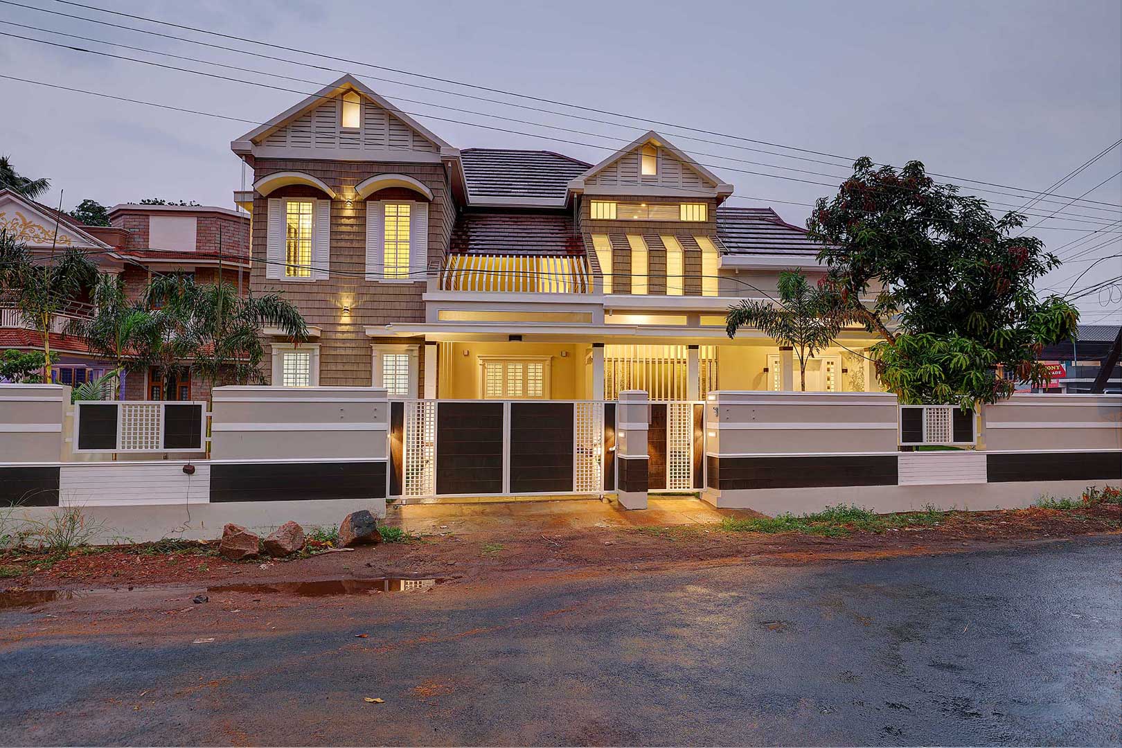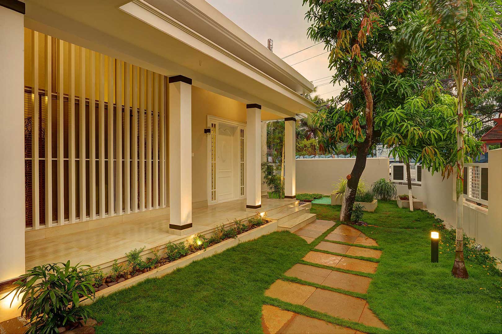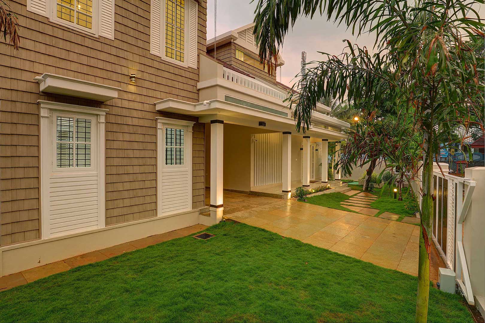A two sided frontage expresses this cottage style home with an east facing front entrance, having a high roof presence with angled glazed cutouts inviting positive natural sunlight and passage for air made possible through louvers.