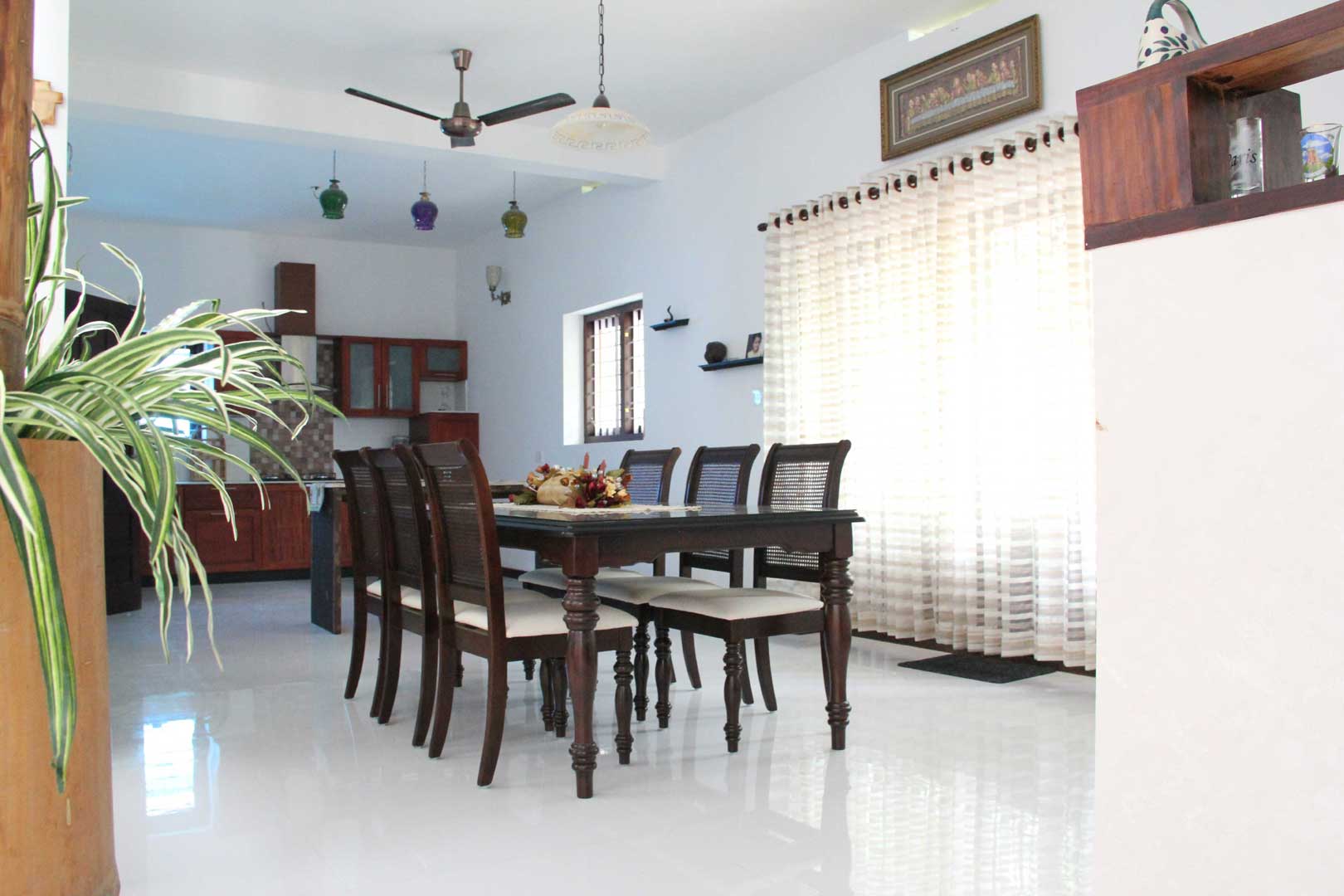 A dewelling space expressed here through its spacy interiors like a sprawling hall with a courtyard and that extending into other rooms and spaces which are themed around elements of bamboo.